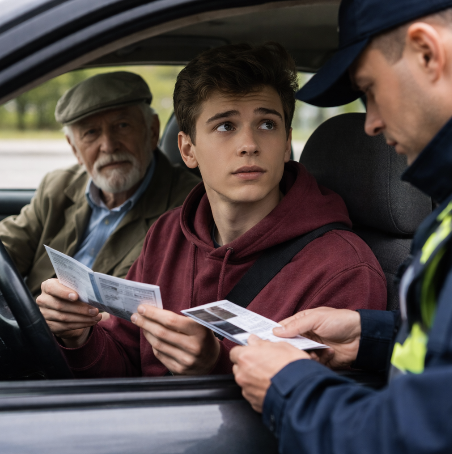 Спустя месяц Кирилл поехал с дедом по делам. За рулём был он. На одном из перекрёстков их остановил инспектор.