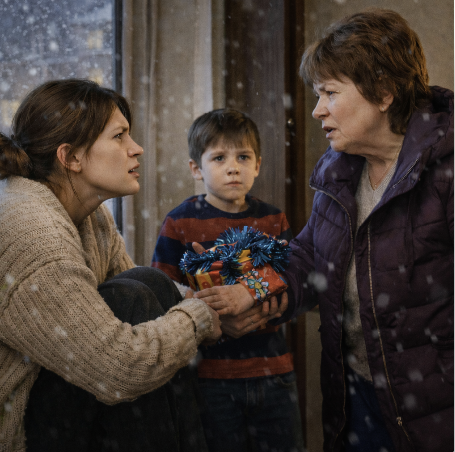 — С наступающим, мои хорошие! — голос Валентины Сергеевны прозвучал слишком звонко. Не разуваясь, она прошла в прихожую, оставляя на полу мокрые следы, и потянулась к внуку. — Артёмка, чудо ждешь?