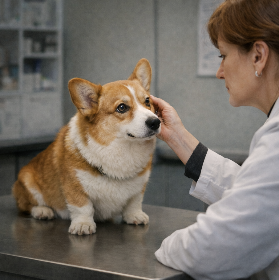 Из переноски выскочил пёс — молодой, сильный, с живыми, внимательными глазами. Корги. Рыжий, с белым пятном на груди. Он тут же уткнулся носом ей в ладонь и радостно завилял коротким хвостом.