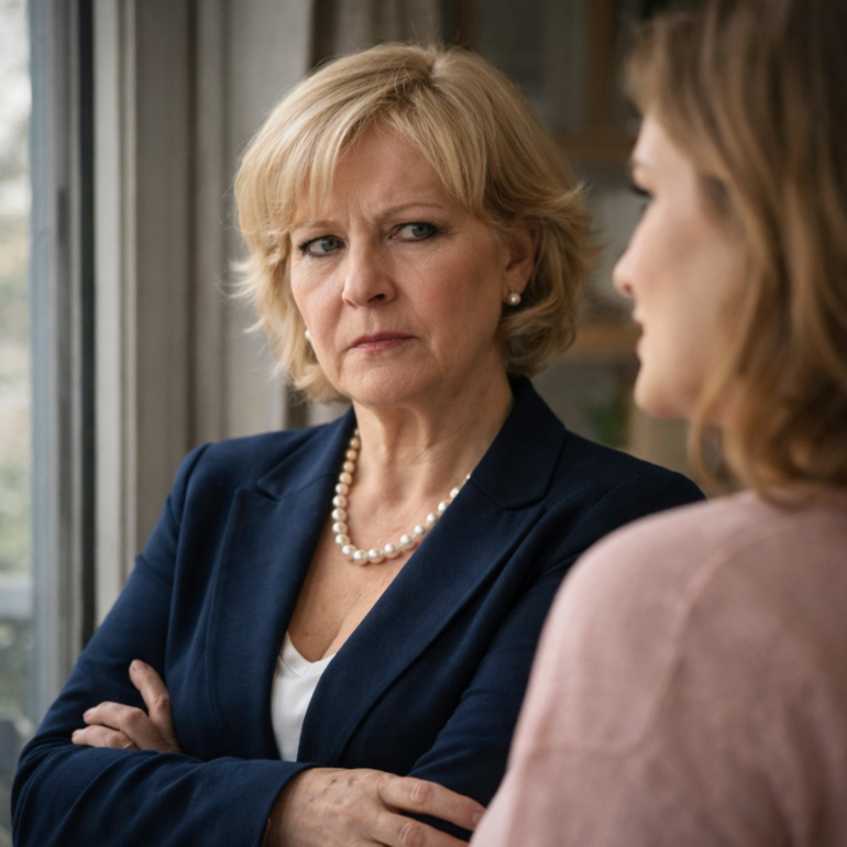 Она вошла в квартиру с видом человека, привыкшего к главной роли: строгий костюм, идеальная укладка, уверенный взгляд.