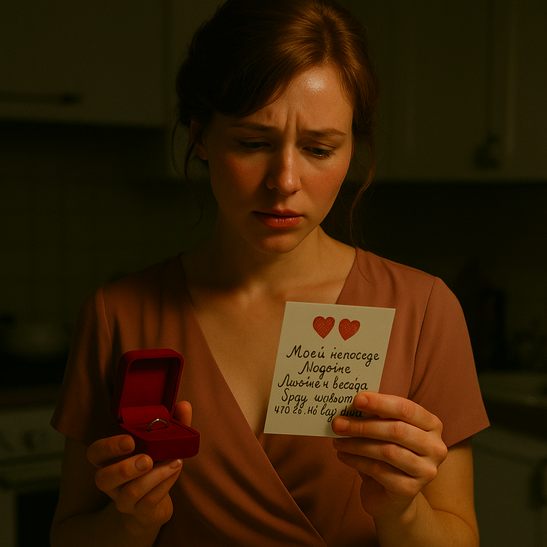 Взгляд её упал на коробочку из-под кольца. Внутри лежала маленькая открытка: два сердечка и надпись — «Моей непоседе Людочке. Люблю и всегда буду любить, что бы ни случилось».