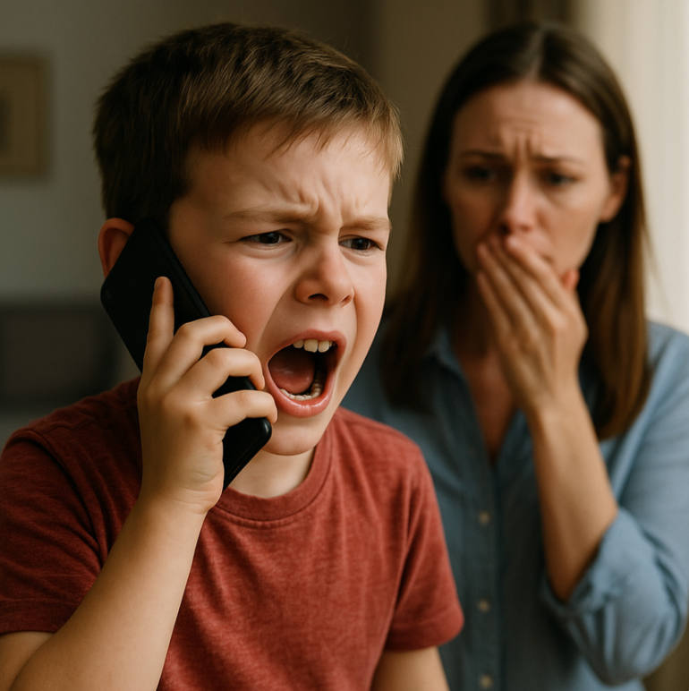 Высокий детский голос резал по нервам, каждое слово будто стучало в виски. Артём стоял посреди комнаты, лицо раскраснелось от истерики. Его маленькие кулачки дрожали.