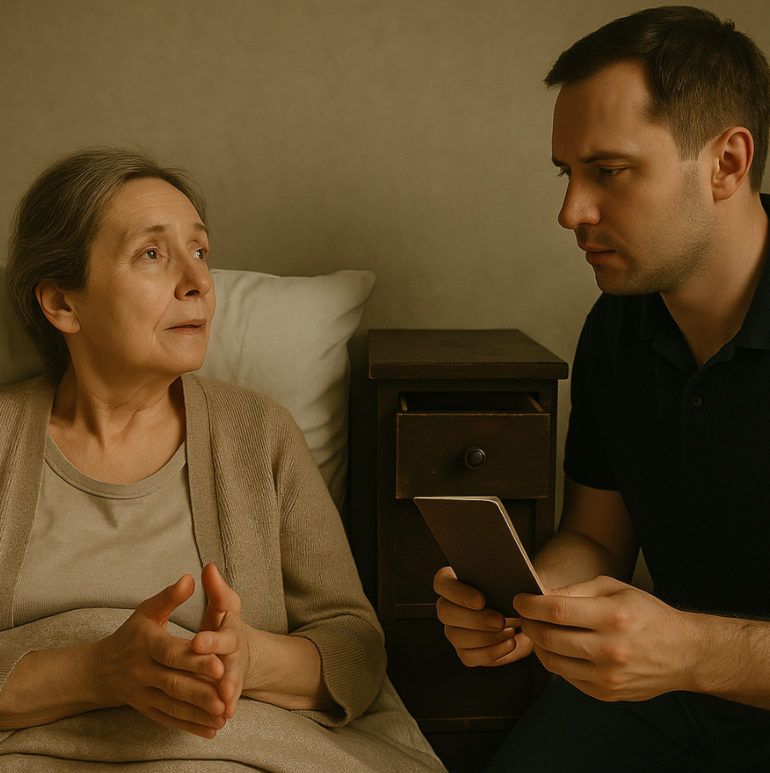«Если вы это читаете — значит, меня нет. Артём, деньги на книжке твои. Лёня, у тебя и так всё есть, помогай брату. Квартиру делю пополам между внуками – неродным и внебрачным, ведь другого у меня нет. Пусть это будет память обо мне».