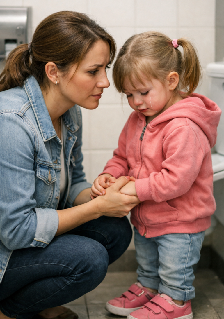 В туалете Елена присела перед дочерью и серьёзно спросила: