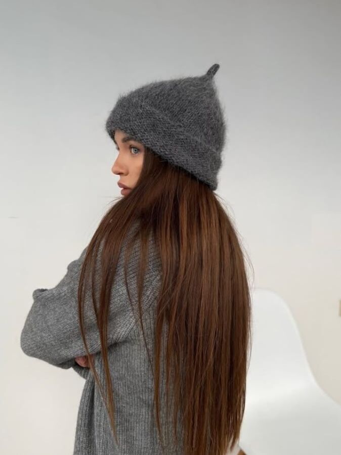 А форма шапки может быть любой — классическая бини, ушанка, кроп шапка (короткая), с подворотом или без.