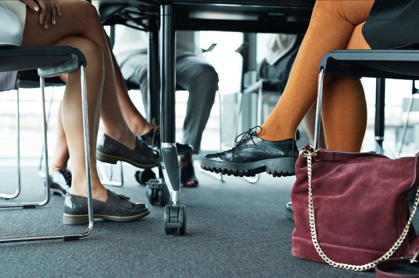 Основная проблема — отек ног из-за отсутствия работы икроножных мышц («мышечного насоса»). Обувь не должна сдавливать стопу, когда вы сидите. Отлично подходят туфли-лодочки на невысоком каблуке (3-4 см) или элегантные мокасины с мягкой стелькой. Имеет смысл держать в офисе сменную пару удобной обуви.
