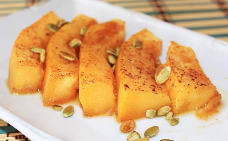 Из мякоти тыквы можно сделать нежное пюре, нарезать ее аккуратными кубиками или тонкими ломтиками.