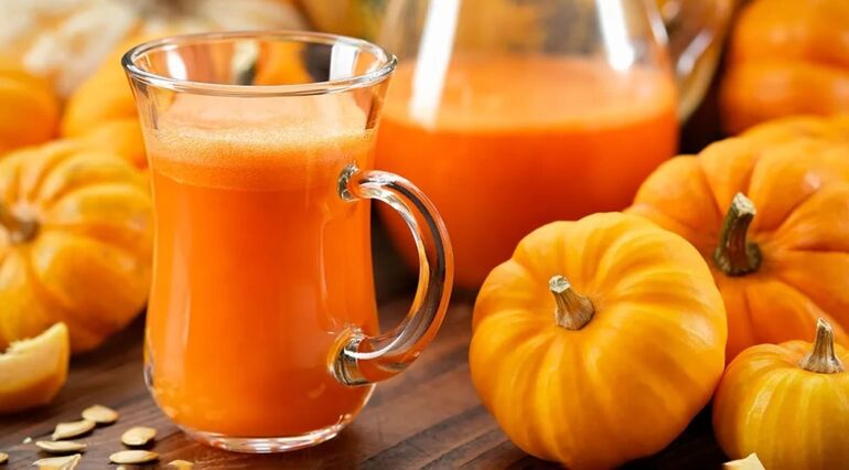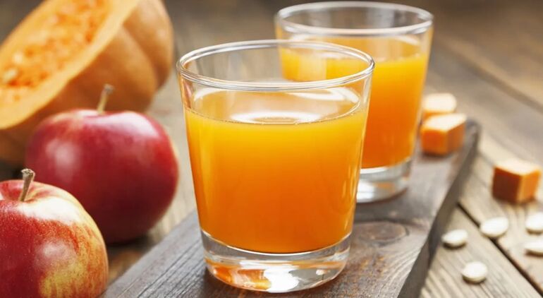 Тыкву, яблоки и морковь очистите и нарежьте, а затем пропустите все через соковыжималку.