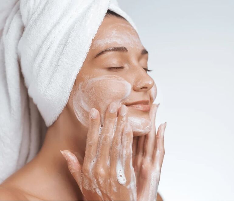 Начните макияж с очищения и воспользуйтесь мягким эксфолиантом. Тонизируйте кожу, щедро увлажните и дайте средствам впитаться.