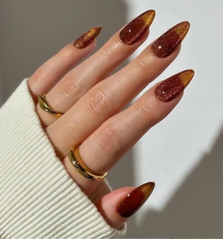 Чаще такой нейл-дизайн — в оттенках зеленого (как доллар), золотого (богатство), красного (решительность, уверенность) и нюдового (естественность и уверенность в себе).