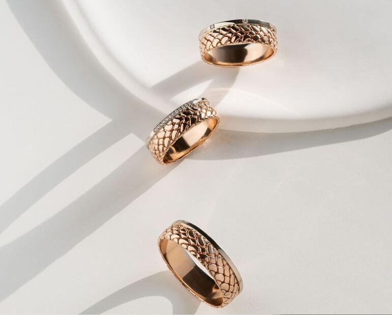 Есть ли место трендам в деловом стиле? Конечно! Не бойтесь сочетать разные модные тенденции и дизайны колец. Миксуйте белое и красное золото или серебро с желтым золотом, а строгие формы с трендовыми асимметричными кольцами. Потому что это выглядит вау!