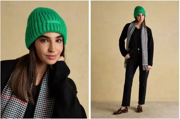 В моде этот тренд будет держаться не меньше 3 лет, пока окончательно не надоест. Сейчас шапка в рубчик и с широким отворотом выглядит просто.