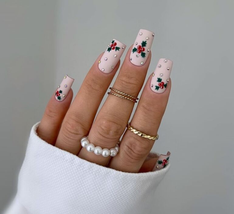3. Новогодний маникюр со стразами