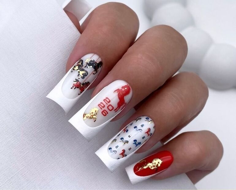 Олень — такой же символ Нового года, как и Санта Клаус. Конечно, если запланировано серьезное мероприятие, то предпочтительны «взрослые» идеи модного маникюра. А если планируете провести праздник в кругу семьи или друзей, то присмотритесь к идеям декора с оленями и скандинавскими орнаментами — теми, которые изображают на свитерах. Все это будет круто смотреться на квадратных ногтях.