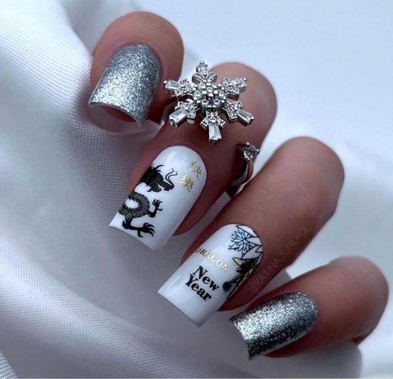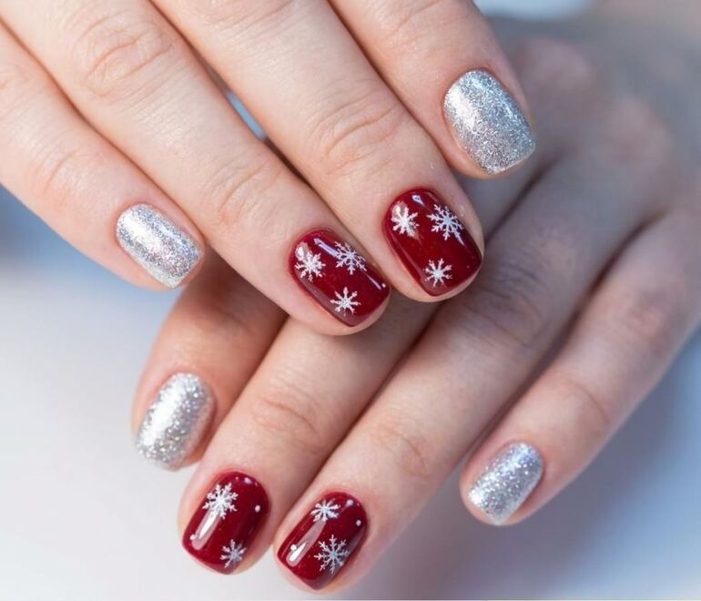 5. Идеи новогоднего маникюра со снежинками