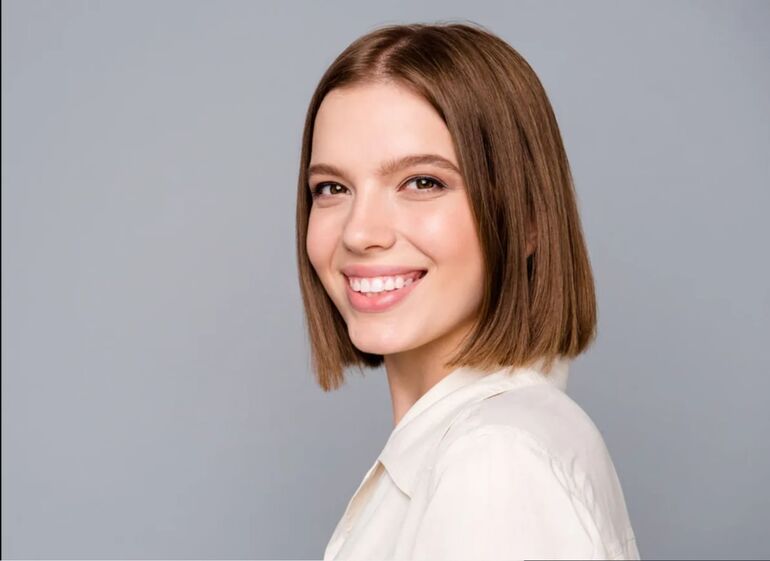 Вариант подойдет классическому каре, прямым и блестящим волосам.