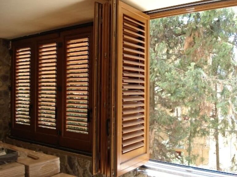 Окна часто обрамляют ставнями, что характерно для стилей сканди, кантри, шале и прованс, в зависимости от вида ставен.