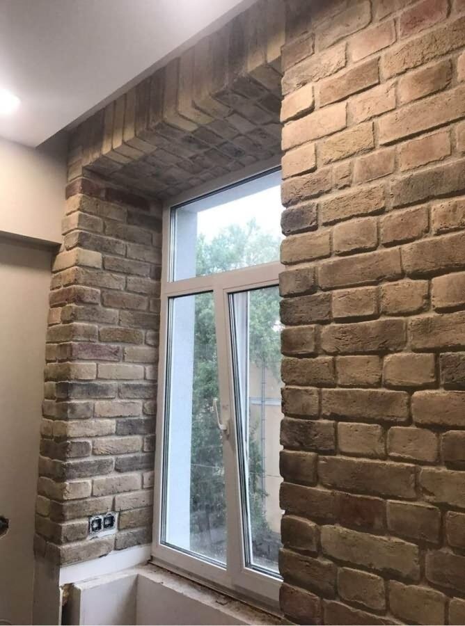 В современном интерьере откосы можно отделать кирпичной кладкой. Цвет и детали кладки могут придать интерьеру брутальность, характерную для лофта или шале, или создать атмосферу легкой классики или минимализма.