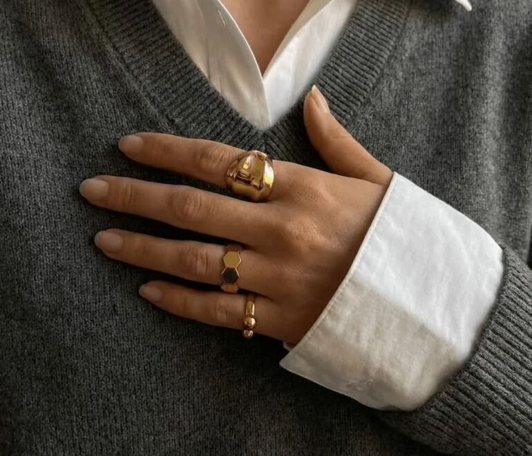 Если любите лаконичность, отдавайте предпочтение одному акцентному кольцу или максимум двум, но с интересным дизайном. Не бойтесь сочетать кольца с разными геометрическими формами, текстурами, камнями и т.д.