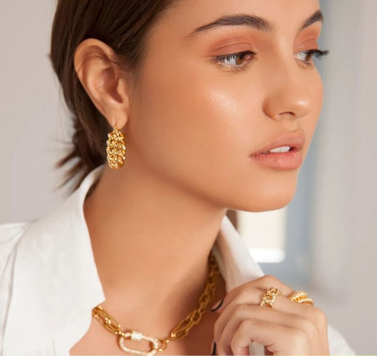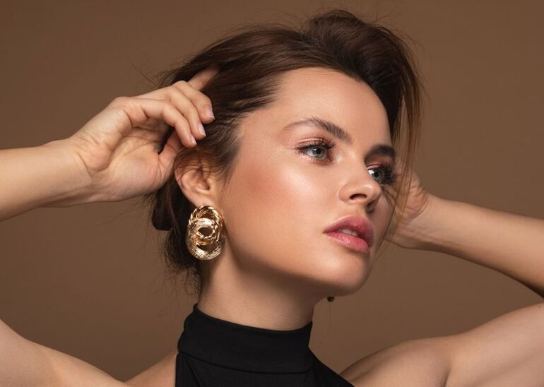 Главная задача аксессуаров — визуально придать форму овала. Это можно сделать с помощью удлиненных сережек с острыми гранями: прямоугольники, ромбы, треугольники, капельки. Лучше, чтобы акцент был ниже уровня мочки. При этом не нужно бояться жесткости — круглолицым девушкам она подходит.