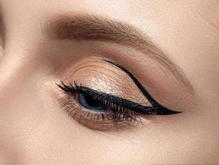 Макияж с классическими стрелками сможет сделать практически каждая. А как насчет новогодних экспериментов с необычными стрелками? Необычные и простые графичные стрелки — две треугольные линии как будто продолжают традиционные черные стрелки, добавляя им свечение.