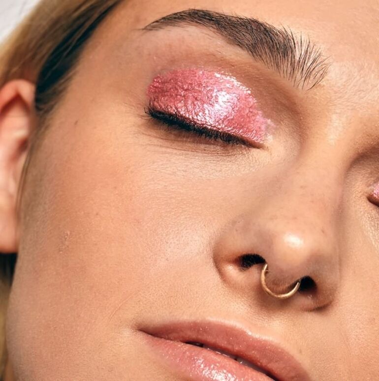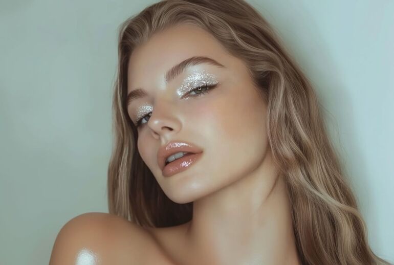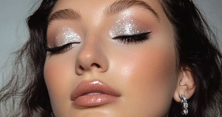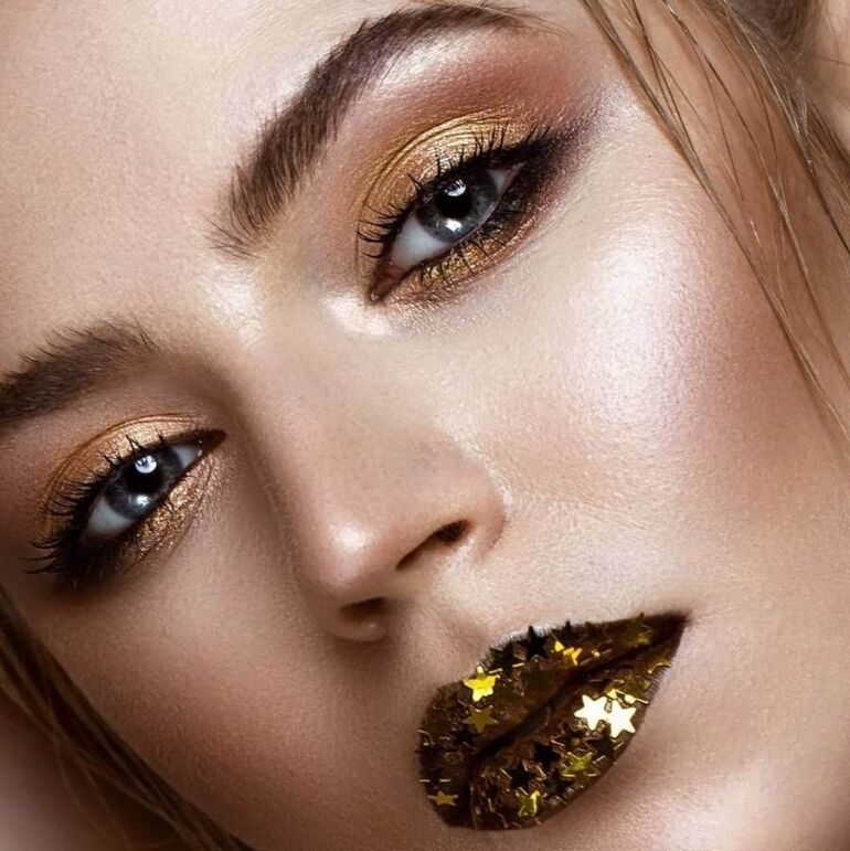 Новый год без блесток — не праздник. На ваш выбор сияние на верхнем веке или на нижнем, на щеках вместо румян или на губах, чтобы придать им сверкающий объем.