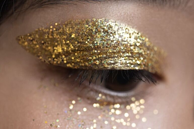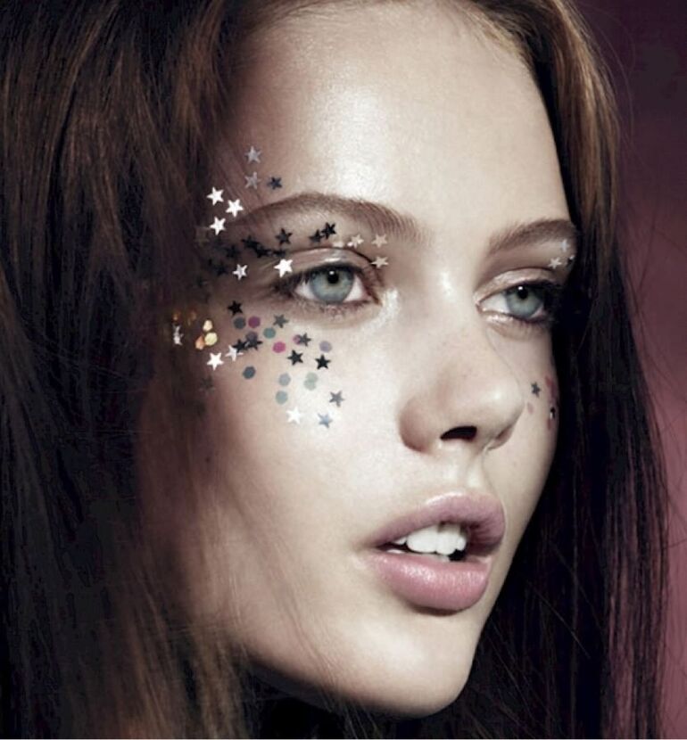 Вам помогут блестки и стразы, сочные оттенки теней, сияющий хайлайтер и цветные карандаши. Внимательно изучите содержимое вашей косметички и выделите средства с блеском и цветом, которые пригодятся для креативных и необычных праздничных образов.
