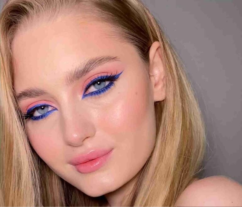 Эффектный макияж не умеет быть простым и быстрым? Да, возможно, у вас, не получится за минуту нарисовать ровные стрелки, но основной «ингредиент» этого мейкапа есть в косметичке у каждой – это цветной карандаш для век. Когда кроме карандаша и туши, на глазах нет других акцентов, то фокус переносится на щеки: сочно-розовые румяна придают лицу выразительность и свежесть.