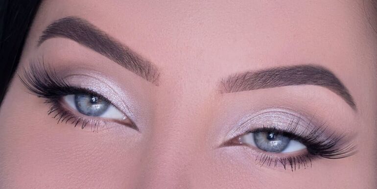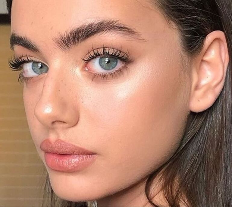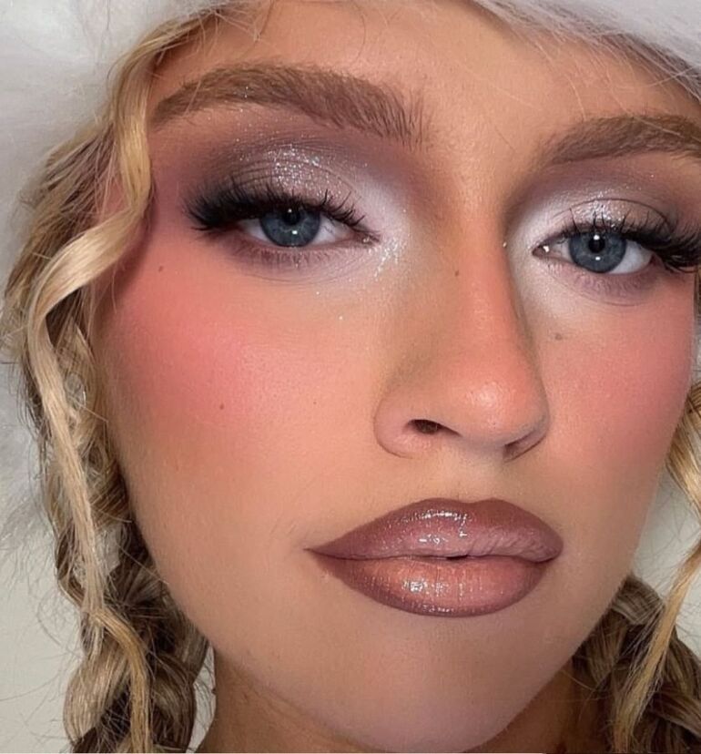 Такой «снежный» макияж век будет умопомрачительно смотреться на темной или смуглой оливковой коже, а на светлой похожий эффект дают тени под цвет губ – светло-розовые или светло-коричневые.