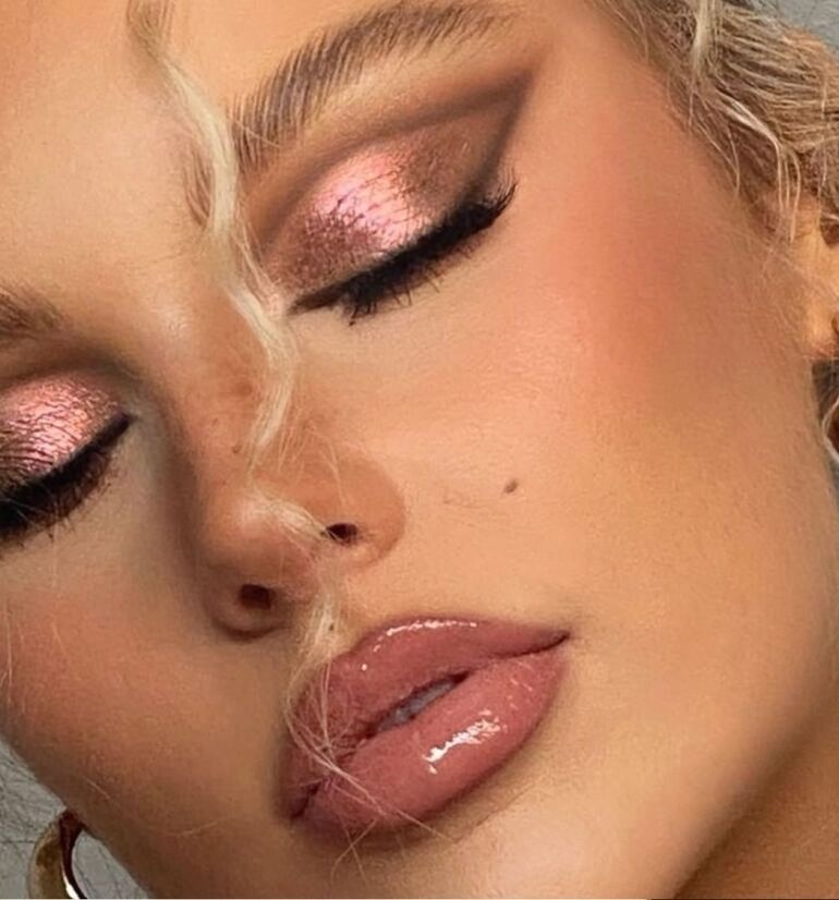 Светящийся акцент во внутреннем уголке века часто используют, чтобы визуально сделать взгляд открытым и привлекательным. Обычно для этого берутся белые тени с блеском, но к празднику замените их светящимися и яркими. Классный пример — апельсиново-оранжевые и теплые коричневые краски в макияже.