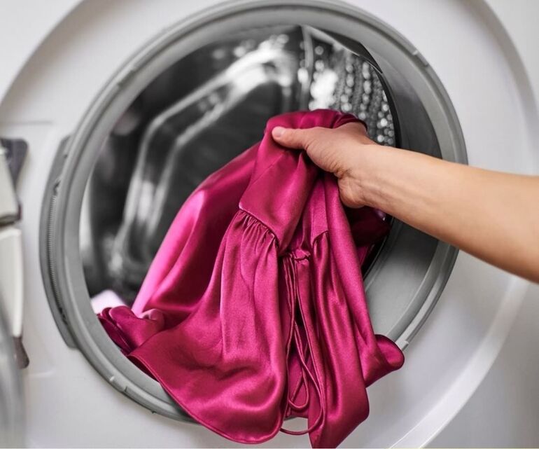 Лучше их стирать вручную или отдать в химчистку. А если в машине есть режим “Шелк”, то можно стирать вещи и в ней.