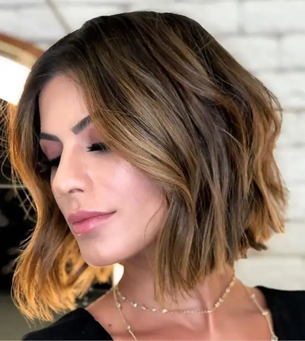Избегайте длинного многослойного боба, он только удлинит лицо. Лучше выбрать среднюю длину, волнистую текстуру и челку.