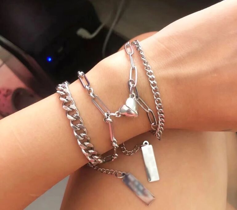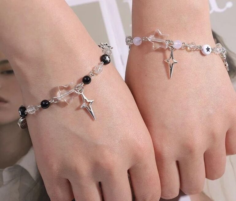 Эти украшения гениальны простотой и визуальной эффектностью. Пара одинаковых браслетов, по одному на каждом запястье, создаёт впечатление зеркального отражения и баланса симметрии.