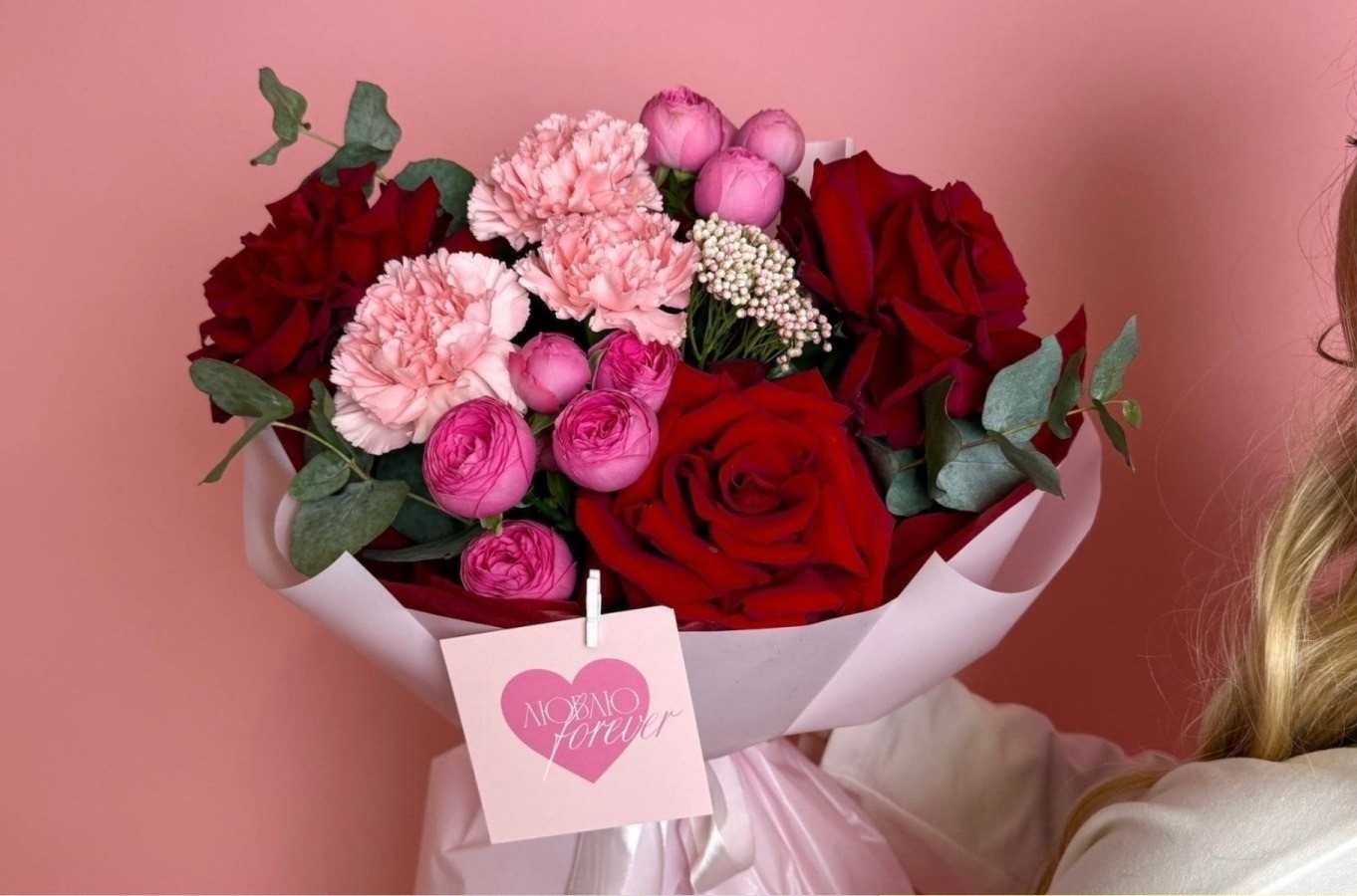 Перед тем как выбрать и оформить букет на 14 февраля, обязательно обсудите это с флористом. Не забудьте приложить к подарку записку с трогательным признанием в любви.