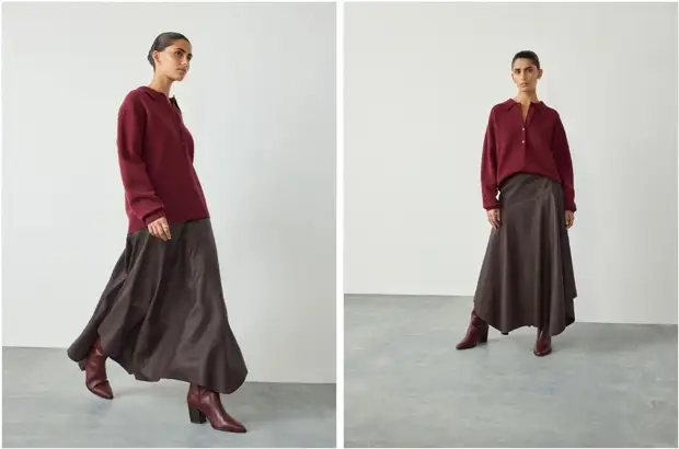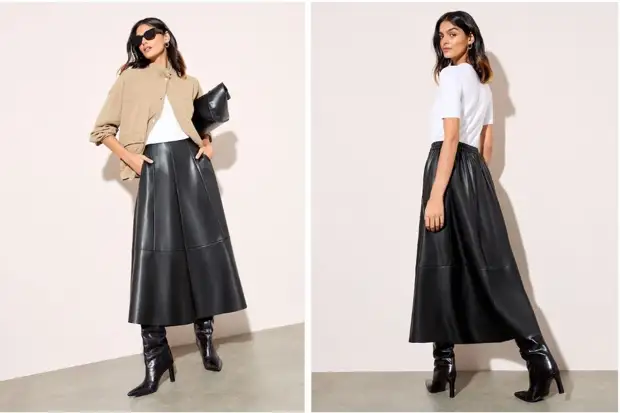 Высокие сапоги – отличная покупка к холодам. Для стильного образа стоит подобрать к ним юбку — еще одну важную вещь этого сезона.