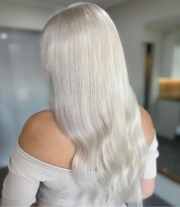 Первая – почти футуристичный платиновый блонд. Ультрахолодный, почти серебристый, который делает образ графичным и стильным. Это окрашивание для смелых, требующее мастерства колориста и серьезного домашнего ухода.