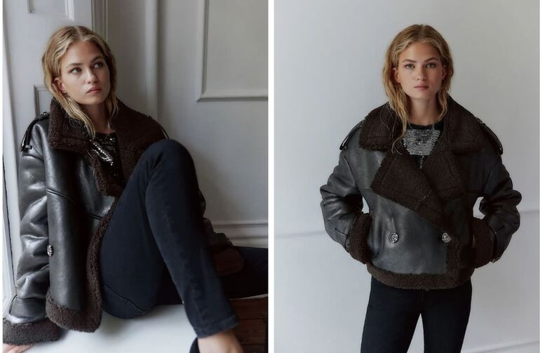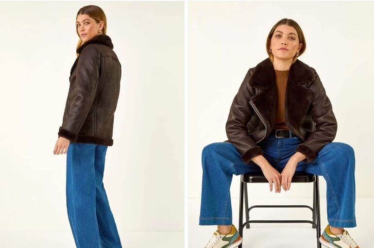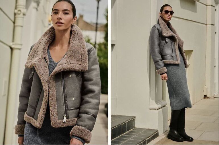 Коричневая укороченная дубленка дополнит синие или голубые джинсы и придаст образу винтажный вид. Добавьте теплый джемпер, ремень, кожаные ботинки или угги и актуальную сумку-тоут, чтобы завершить образ.