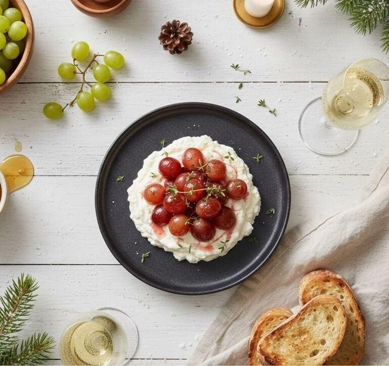 ВЗБИТАЯ ФЕТА С ЗАПЕЧЕННЫМ ВИНОГРАДОМ И ТИМЬЯНОМ