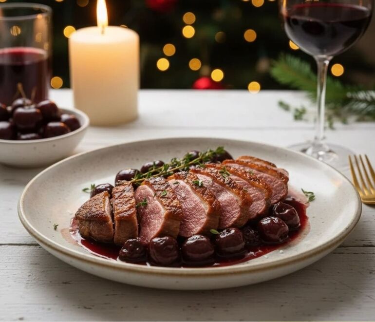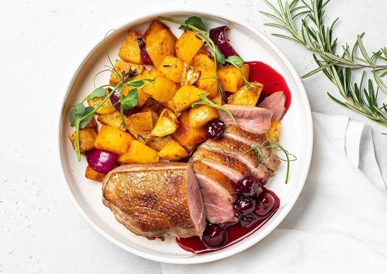 УТИНАЯ ГРУДКА С ВИШНЕВО-ВИННЫМ СОУСОМ