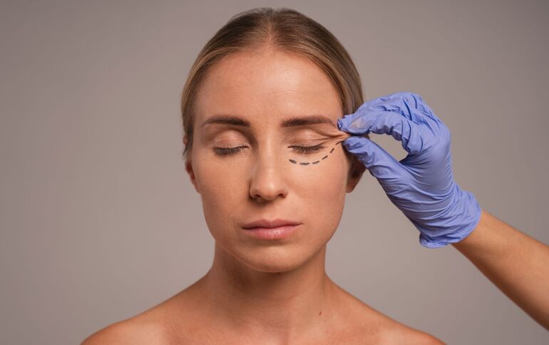 Врач проводит верхнюю блефаропластику, устраняя избыток кожи и жировые грыжи. Часто её сочетают с нижней пластикой век, чтобы убрать отёки, мешки под глазами и добиться гармоничного, свежего и отдохнувшего взгляда.