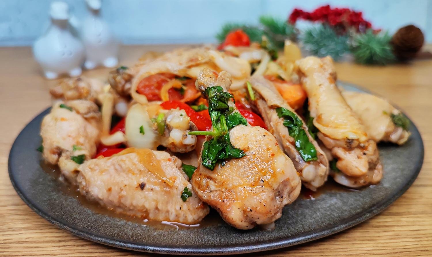 В этой же сковороде обжариваем крылья до румяной корочки.