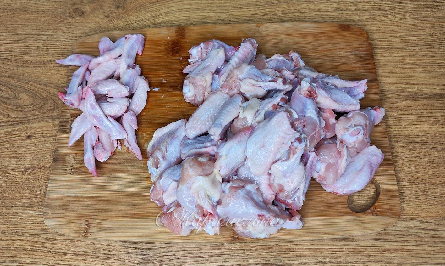 Промываем куриные крылья и обсушиваем бумажным полотенцем.