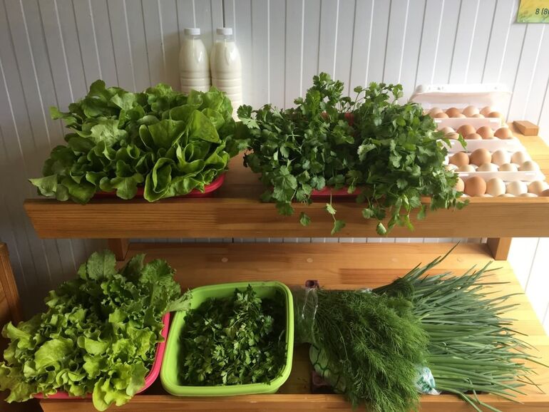Тут строго следуют эко стандартам, не используют химикатов, пропагандируют бережное отношение к тому, что дает природа. Поэтому никаких гербицидов, антибиотиков, усилителей вкуса и консервантов. Тут все самое полезное, настоящее и свежее. Можно угоститься фруктами и ягодами с ветки, попробовать зелень, настоящие помидоры и огурцы. Тут круглый год выращивают зелень. Это настоящая органика!