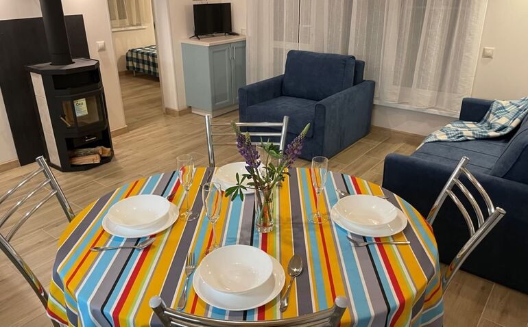 Каждый дом "Фермы моей мамы" - на 2-6 человек, оснащен всем необходимым, каждый с хорошим ремонтом и современными интерьерами. Там по 2 спальни, 2 гостиных с камином, телевизором, кухонной зоной. В каждом доме есть двухспальный диван и кресло-кровать, которые можно использовать как дополнительные спальные места. В каждом - электрическое отопление, горячая вода, а кухонная зона оснащена всем необходимым: бытовой техникой, посудой и утварью.