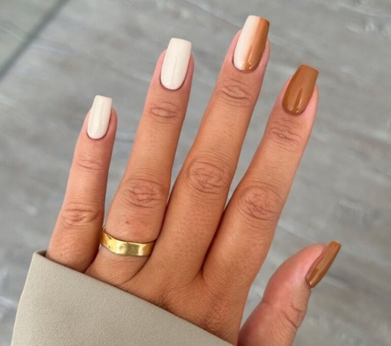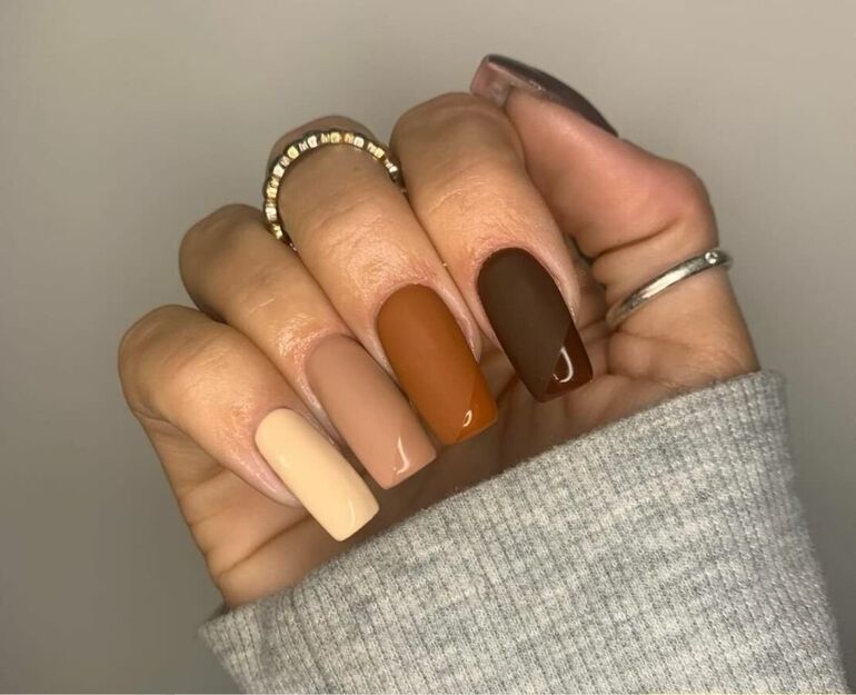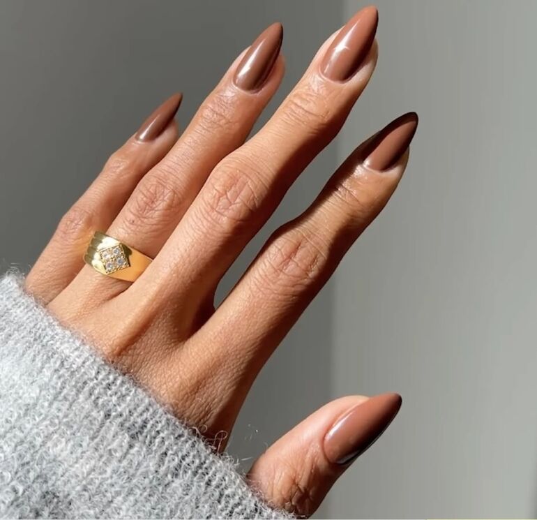 Классический оттенок, который сочетается с любым стилем. При взгляде на ногти цвета латте вы невольно согреваетесь, вспоминая теплый кофе, который ждет в любимой кофейне, в офисе или дома.