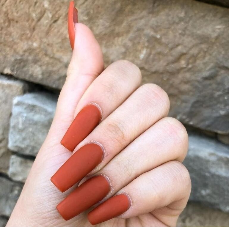 Этот оттенок балансирует между красным и нюдовым. Приглушенный, осенний, напоминающий о теплом пальто и вязаном шарфе терракотовый — насыщенный, но спокойный и невызывающий.