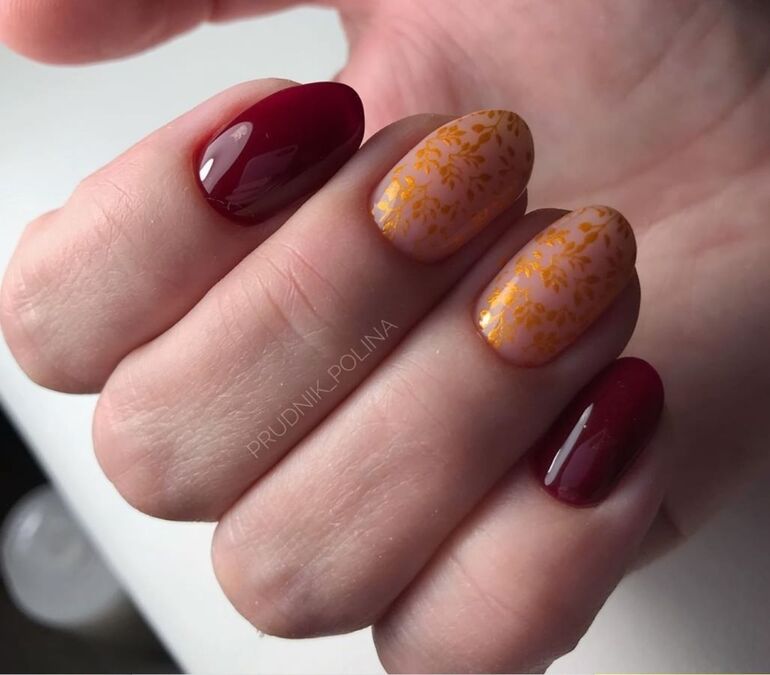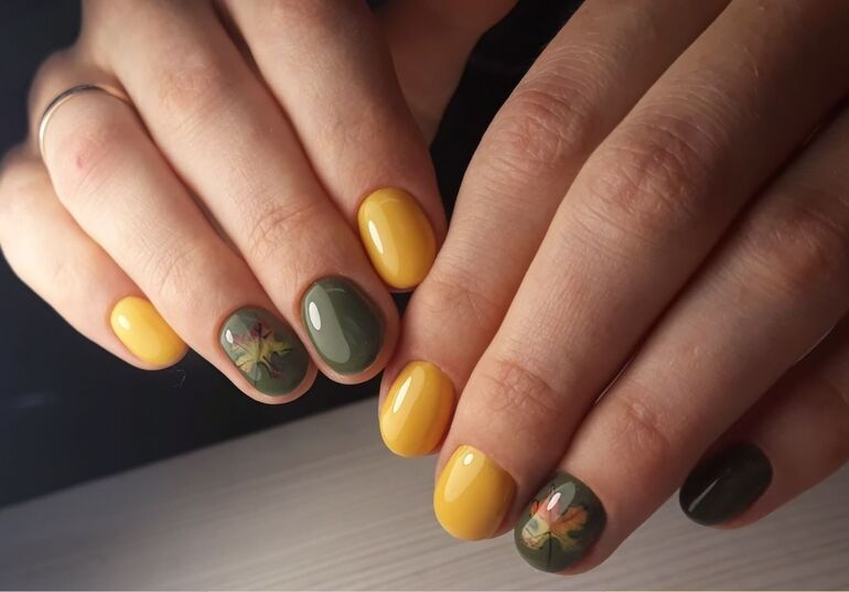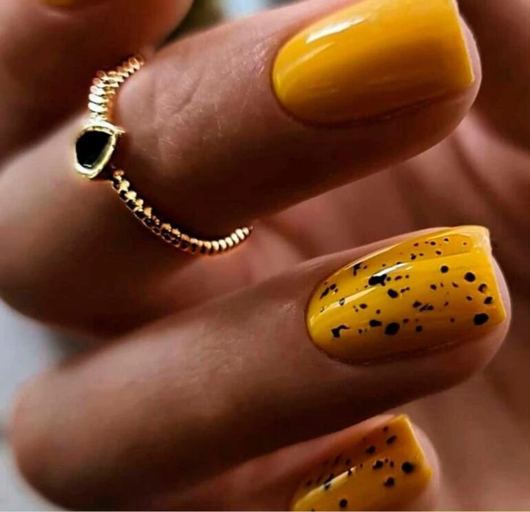 Нет более осеннего цвета в нейл-палитре, чем горчично-желтый. В нем опавшие листья, осеннее солнце, уходящие теплые деньки… Этот оттенок выглядит одновременно сдержанным и дерзким.