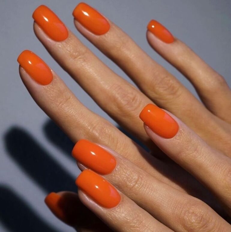 Тыква ассоциируется с Хэллоуином, вернее, с фонарем и головой Джека. Так что, выбрав тыквенный оттенок для ногтей у нейл-мастера, вы не прогадаете.