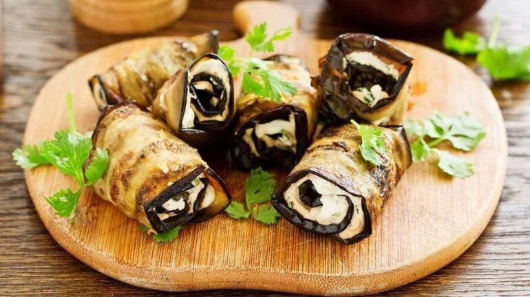 6. Рулетики из баклажанов с брынзой и чесноком