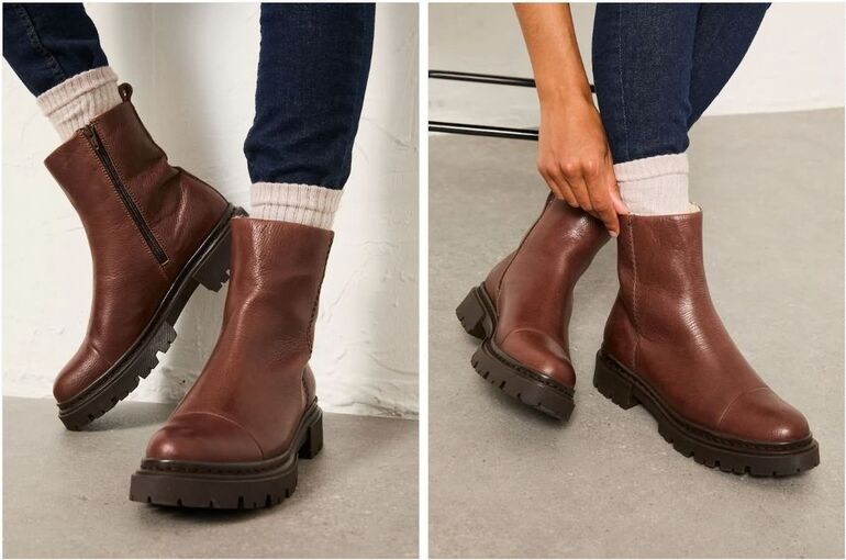 Зимой заправьте брюки и джинсы в модные ботильоны или челси на массивной подошве или контрастной платформе. Следите, чтобы не было «гармошки», и не оставляйте щиколотки открытыми.